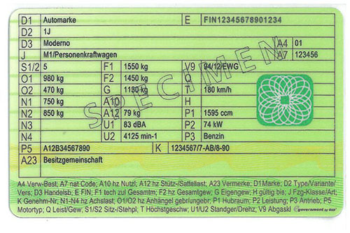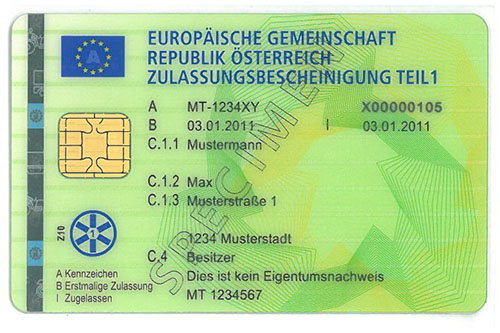 Wzór austriackiego dowodu rejestracyjnego - część I - awers