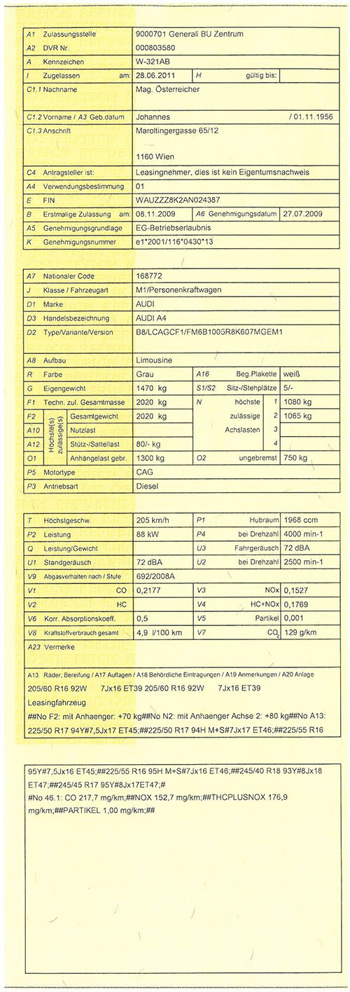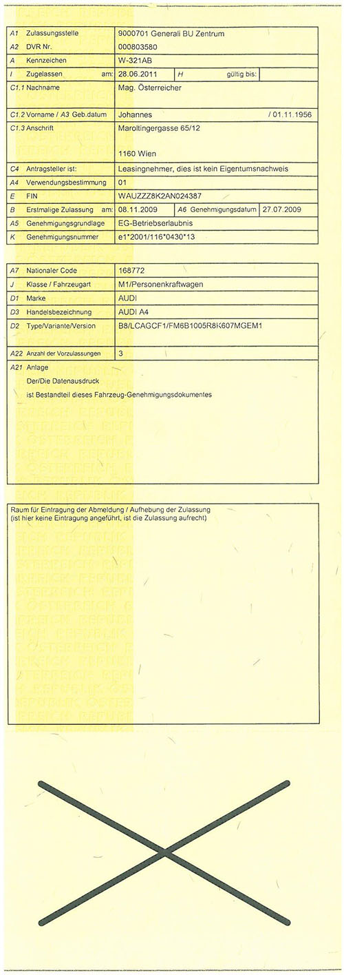 Wzór austriackiego dowodu rejestracyjnego - część II- awers