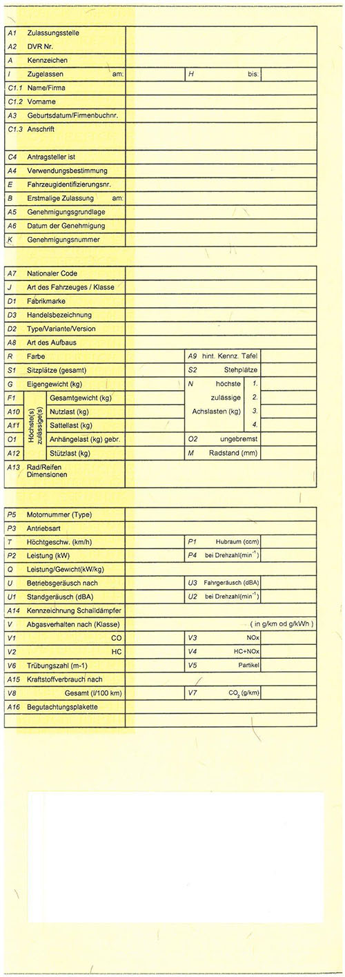 Wzór austriackiego dowodu rejestracyjnego - część I - rewers